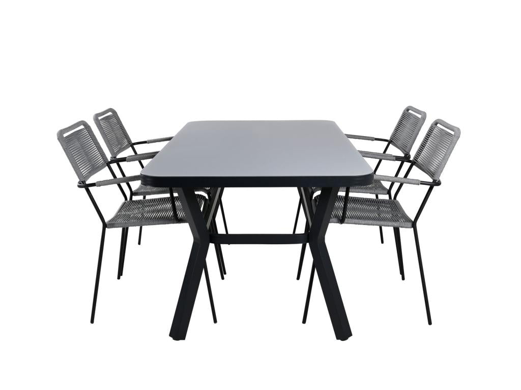 Set tavolo e sedie da giardino Artvivrestore: tavolo 90x160 cm e 4 poltrone, G, nero/grigio. 61523GEOZ