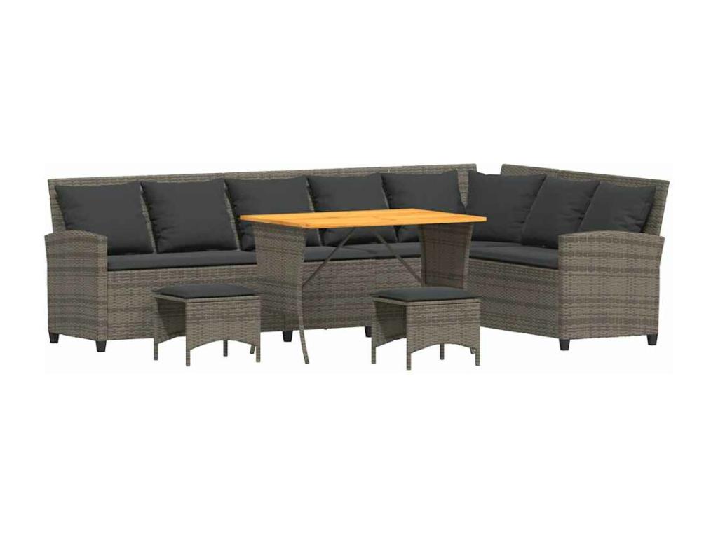 Set di mobili da giardino 4 pezzi con cuscini a L, resina intrecciata grigia 65539OBAO