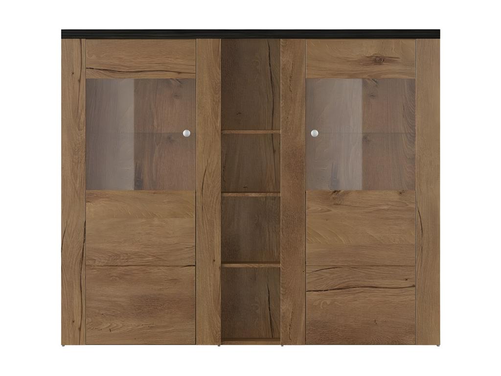 Credenza di design a due ante per soggiorno, finitura effetto legno rovere e nero - collezione Calmetop. 24496VQRI